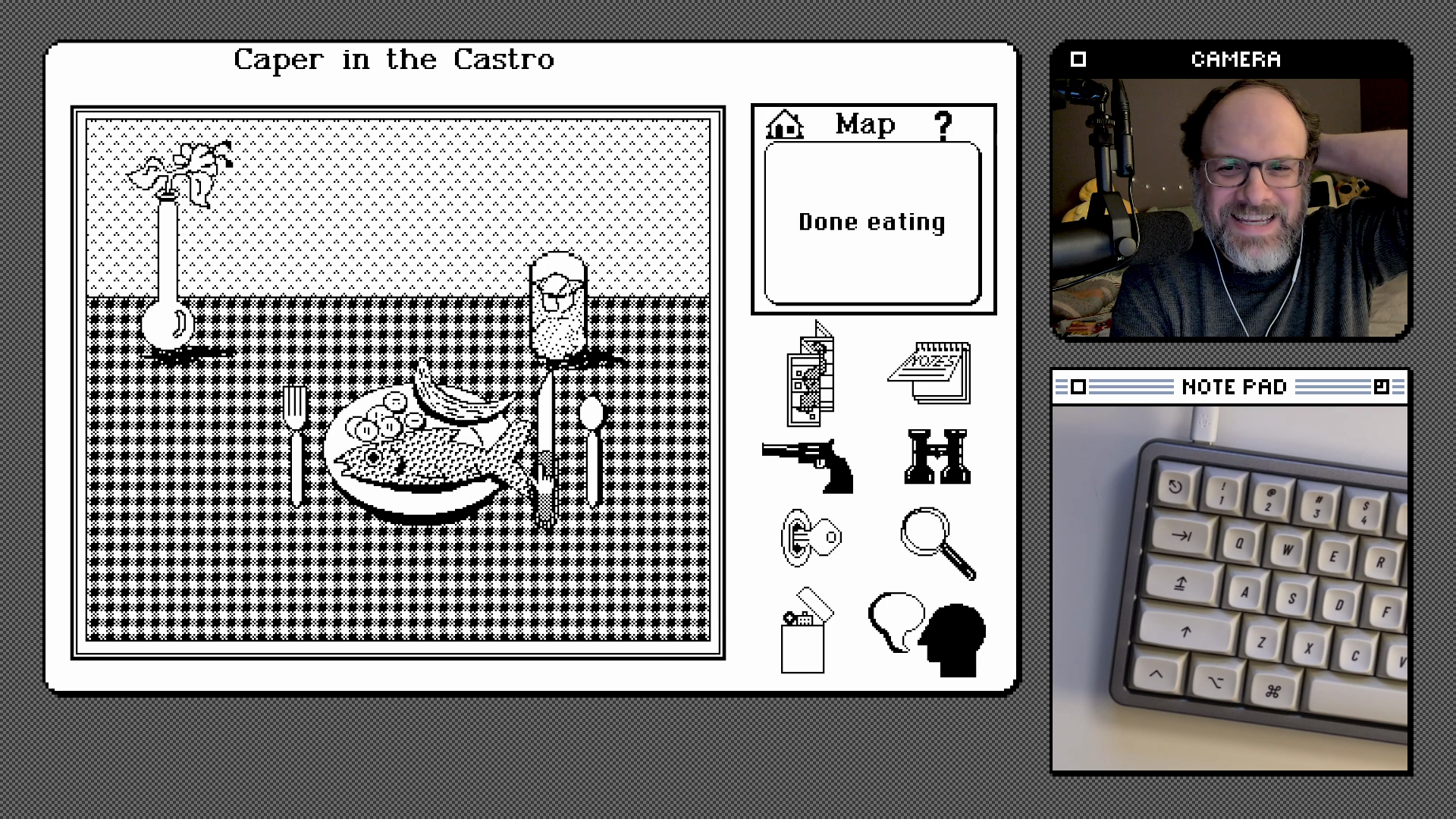 Tonight I’m playing the first known LGBTQ game, Caper in the Castro by C.M. Ralph! It’s a point-and-click murder mystery made in HyperCard, released in 1989 via BBS. “It’s not just a game… it’s a Gayme!”